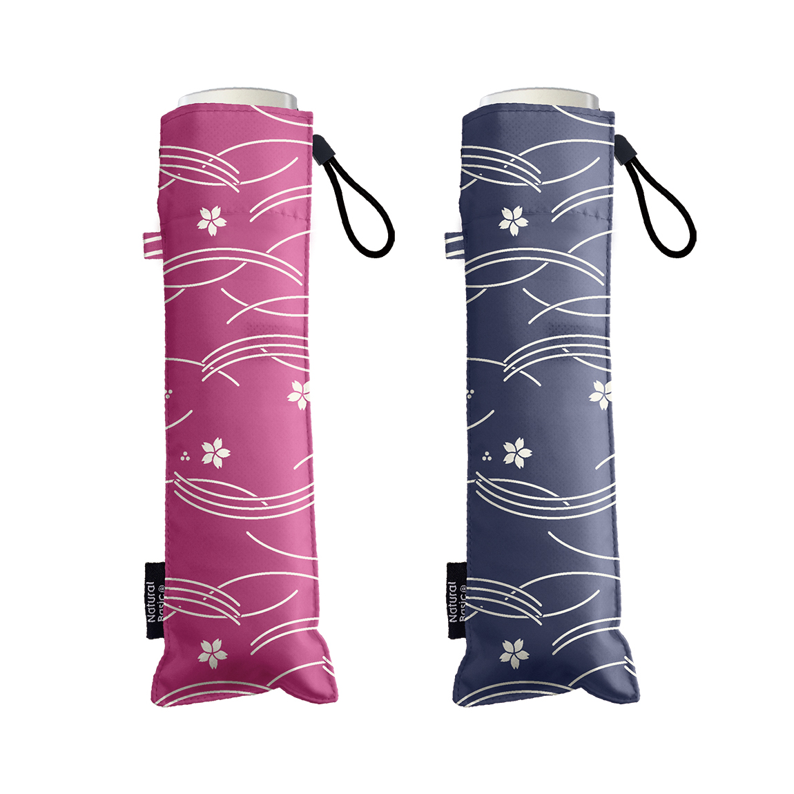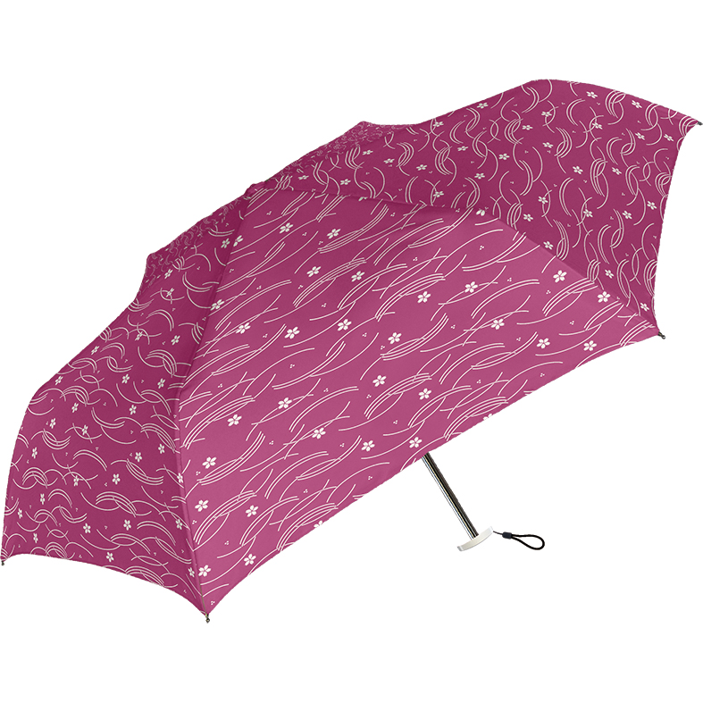 川を流れる桜をイメージした和柄の傘。繊細で優美なデザイン。持ち運びに便利なフラットタイプの折畳みです。