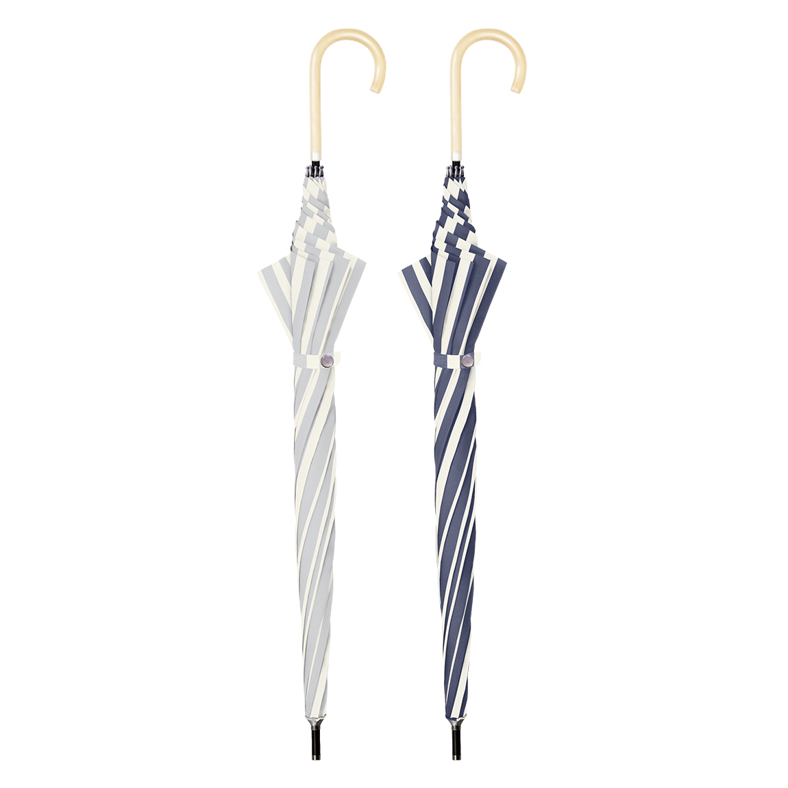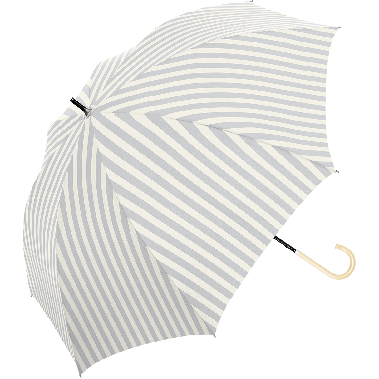 定番のストライプ柄がパラソルで登場。グレーとネイビーの落ち着きのある2色展開。