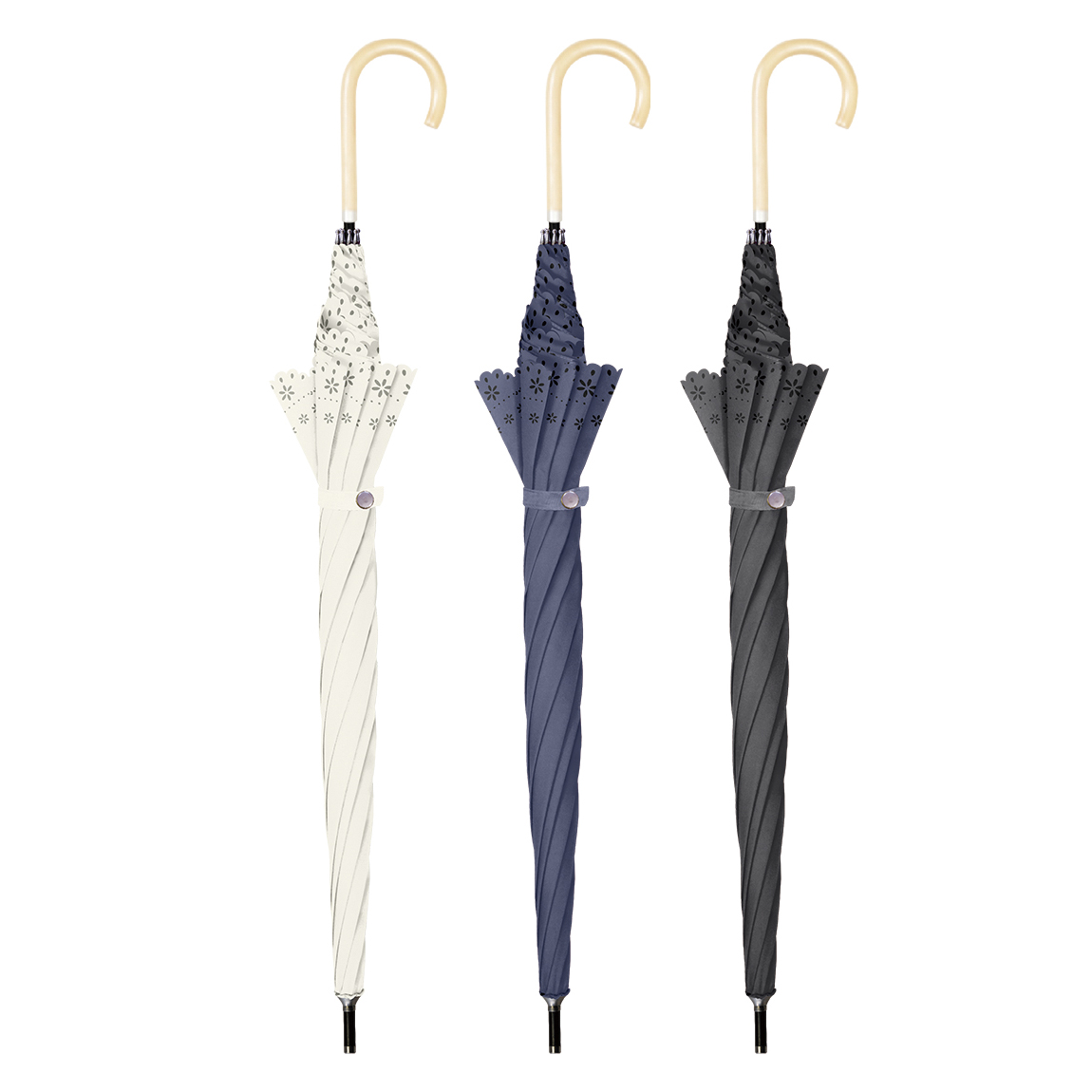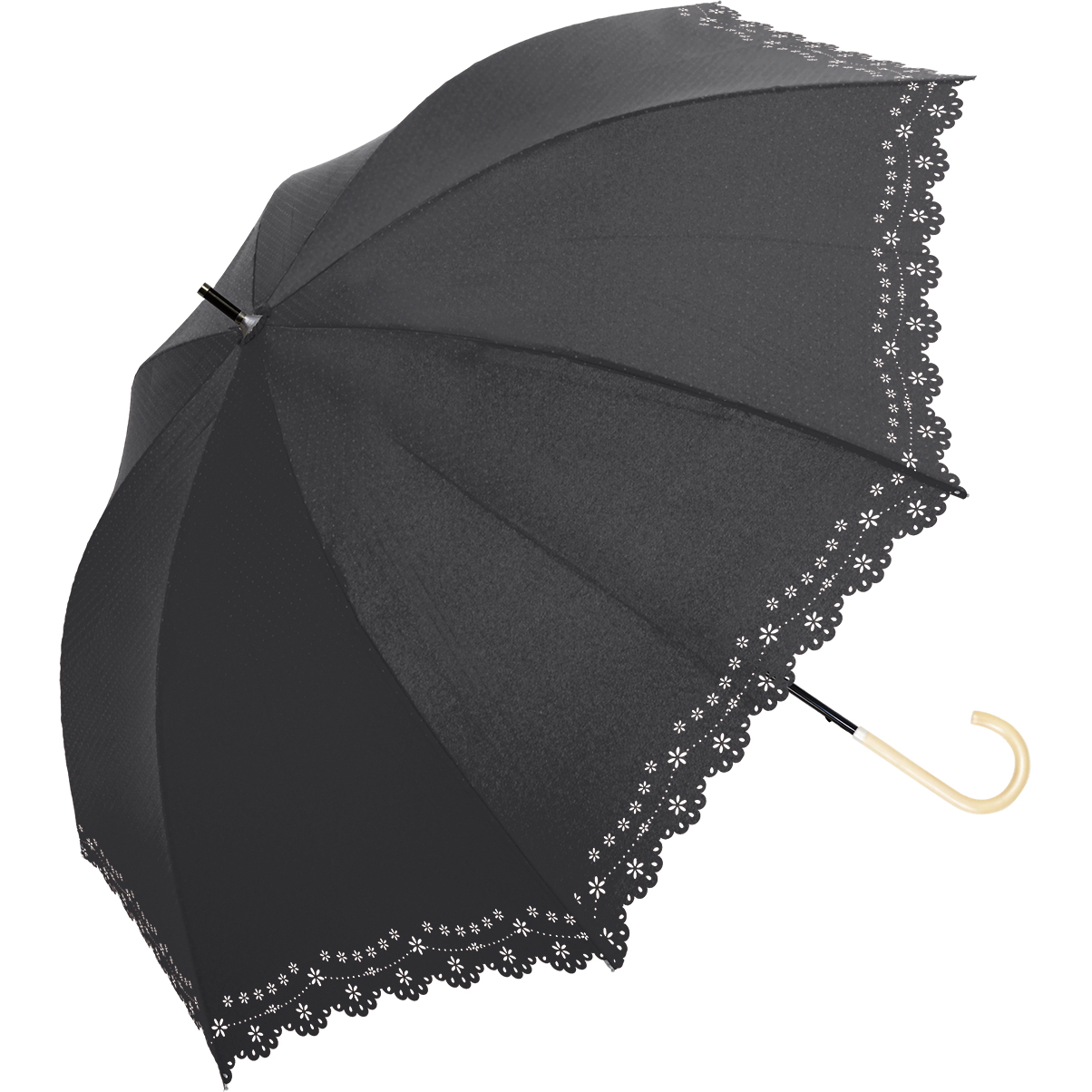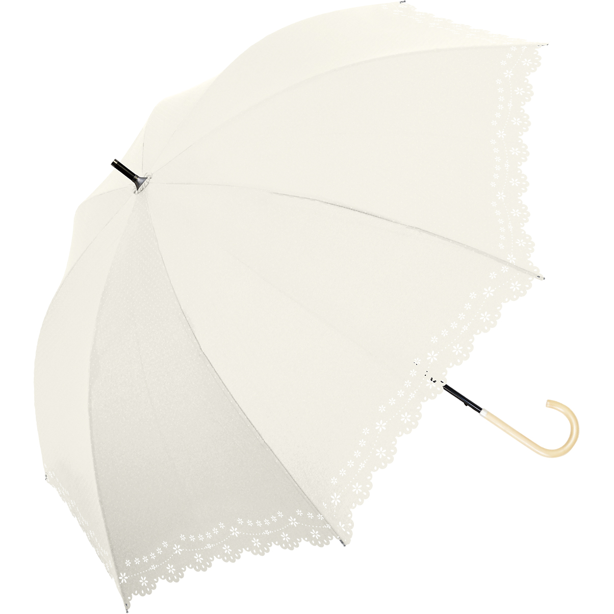 裾のスカラップと細やかな花柄のカットが上品。シンプルでエレガントなデザイン。