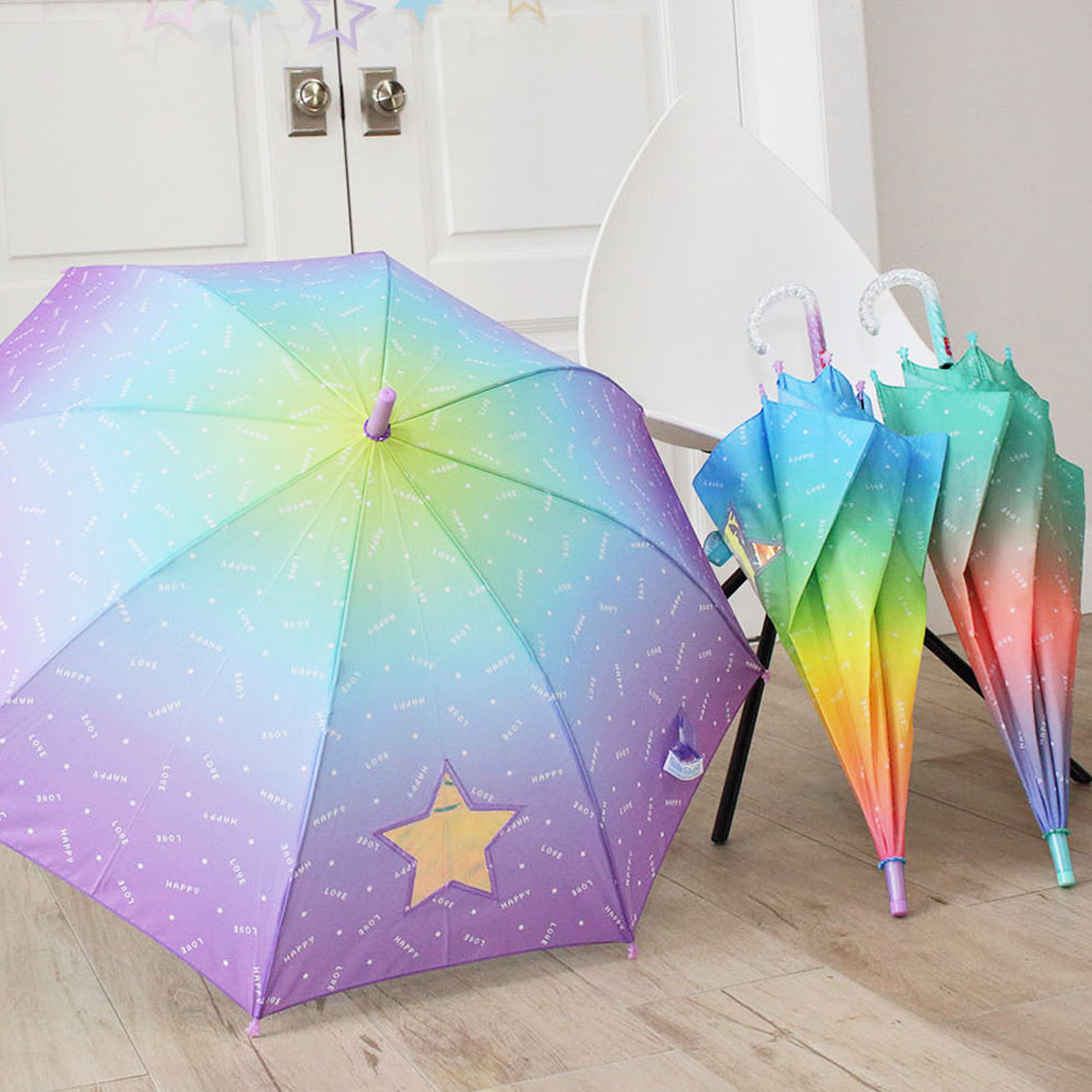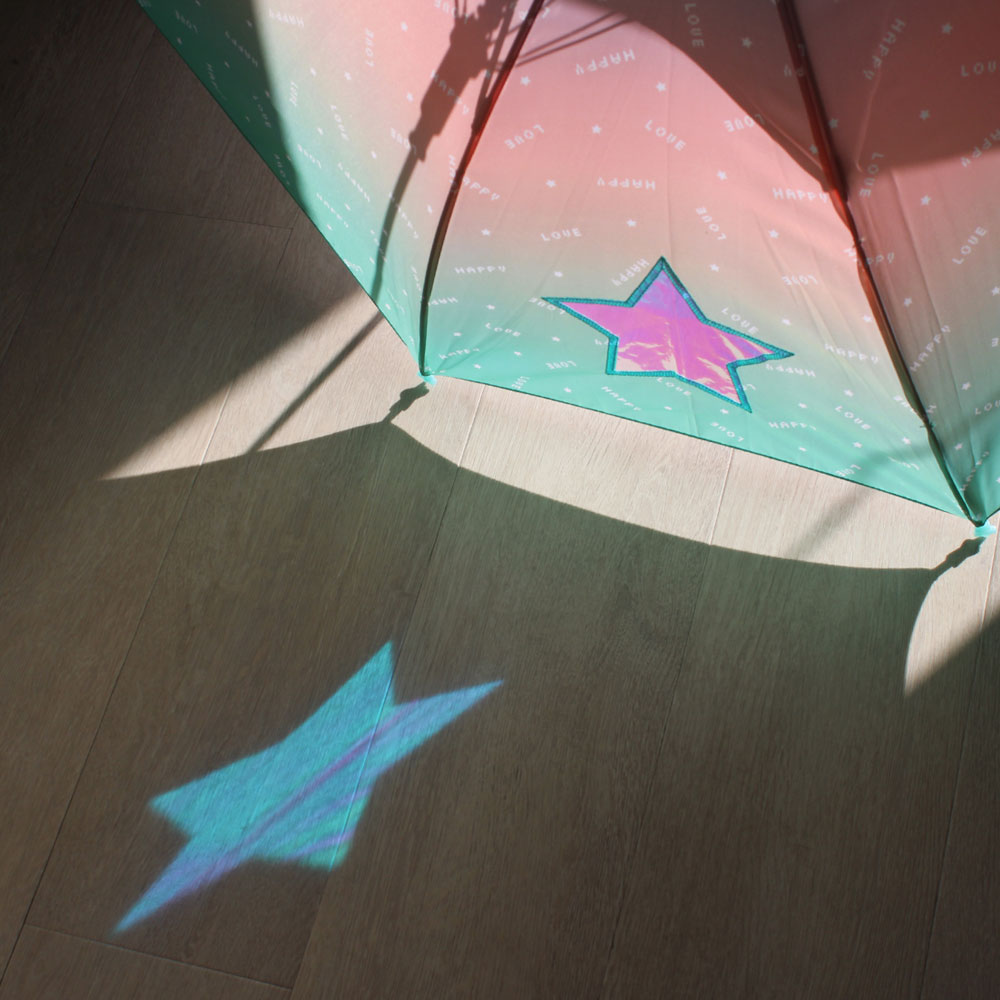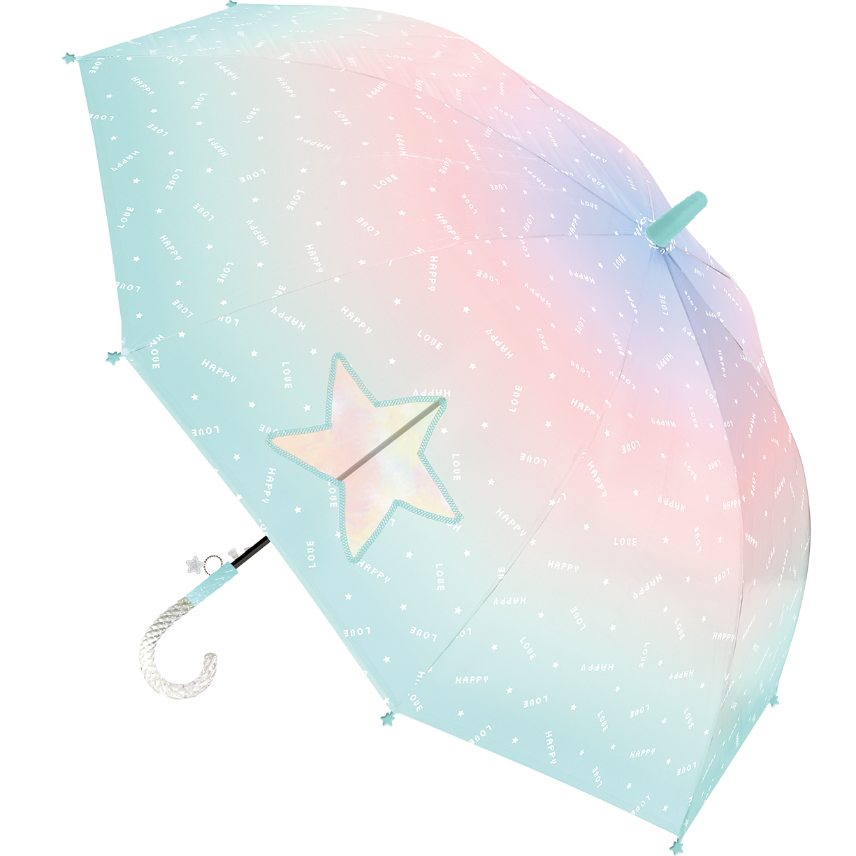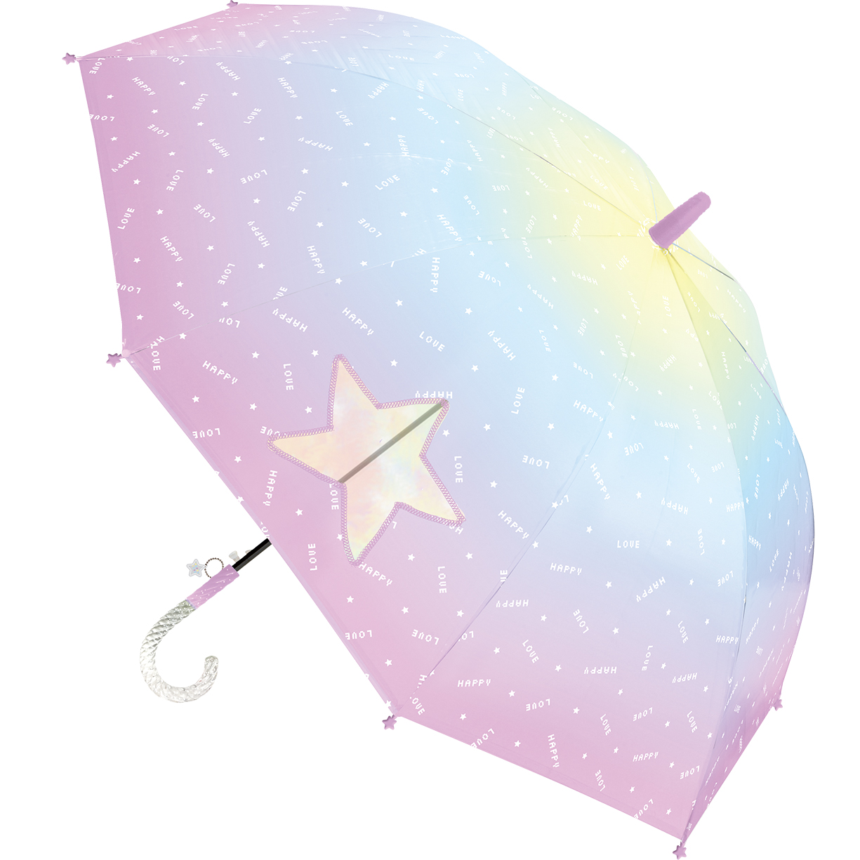 パステルカラーのグラデーションがとってもキュート!オーロラビニール素材の星型窓がポイント。