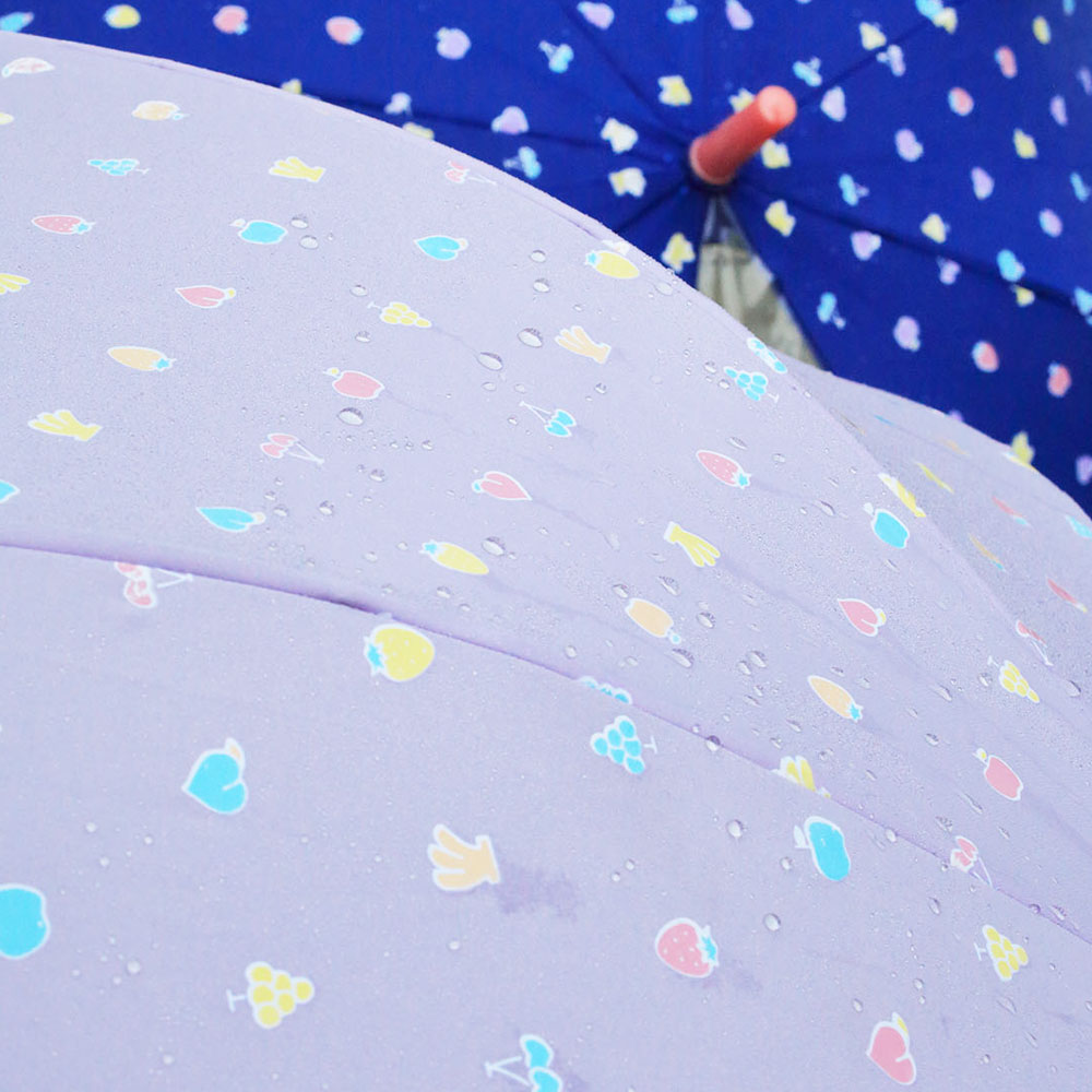 水に濡れると果物がカラフルに大変身!雨の日でもお出かけが楽しくなるデザインです♪