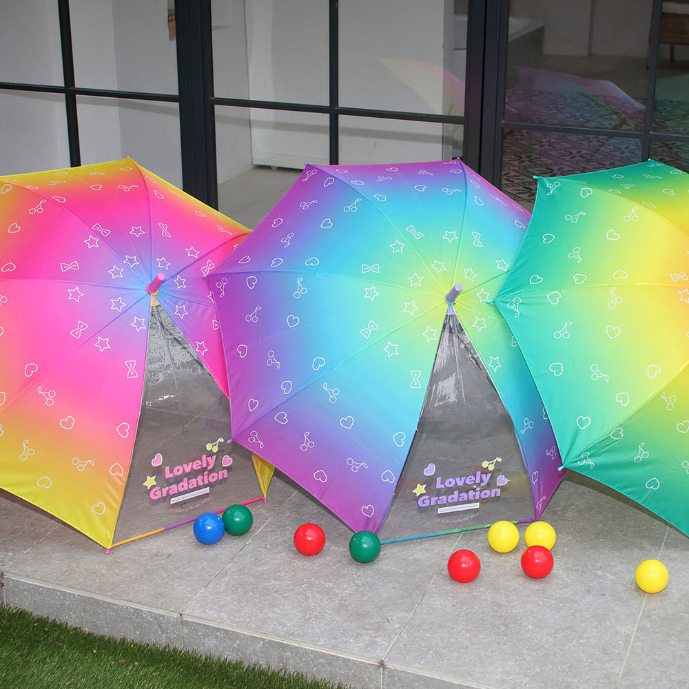鮮やかなビビッドカラーのグラデーション。ポップなデザインで雨の日も明るく過ごそう♪