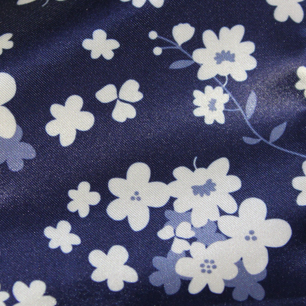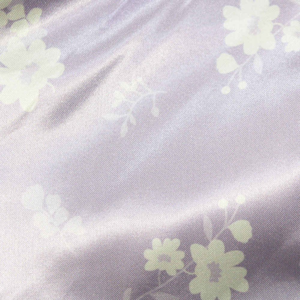 上品な光沢感のサテン生地を使用。可愛らしいボタニカルな花柄を2パターンMIXさせたパッチワークのようなデザイン。