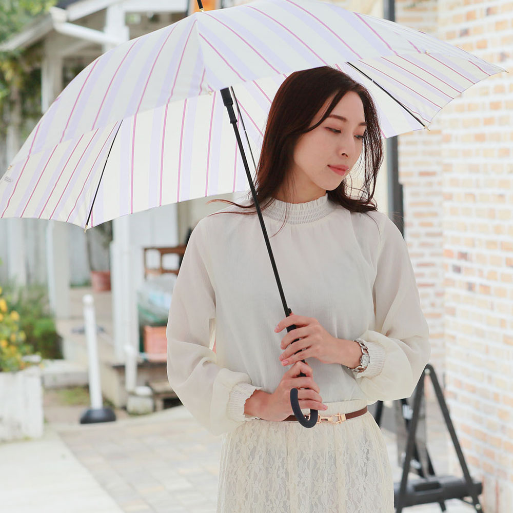 ペールカラーのストライプがフェミニンな雰囲気の傘。