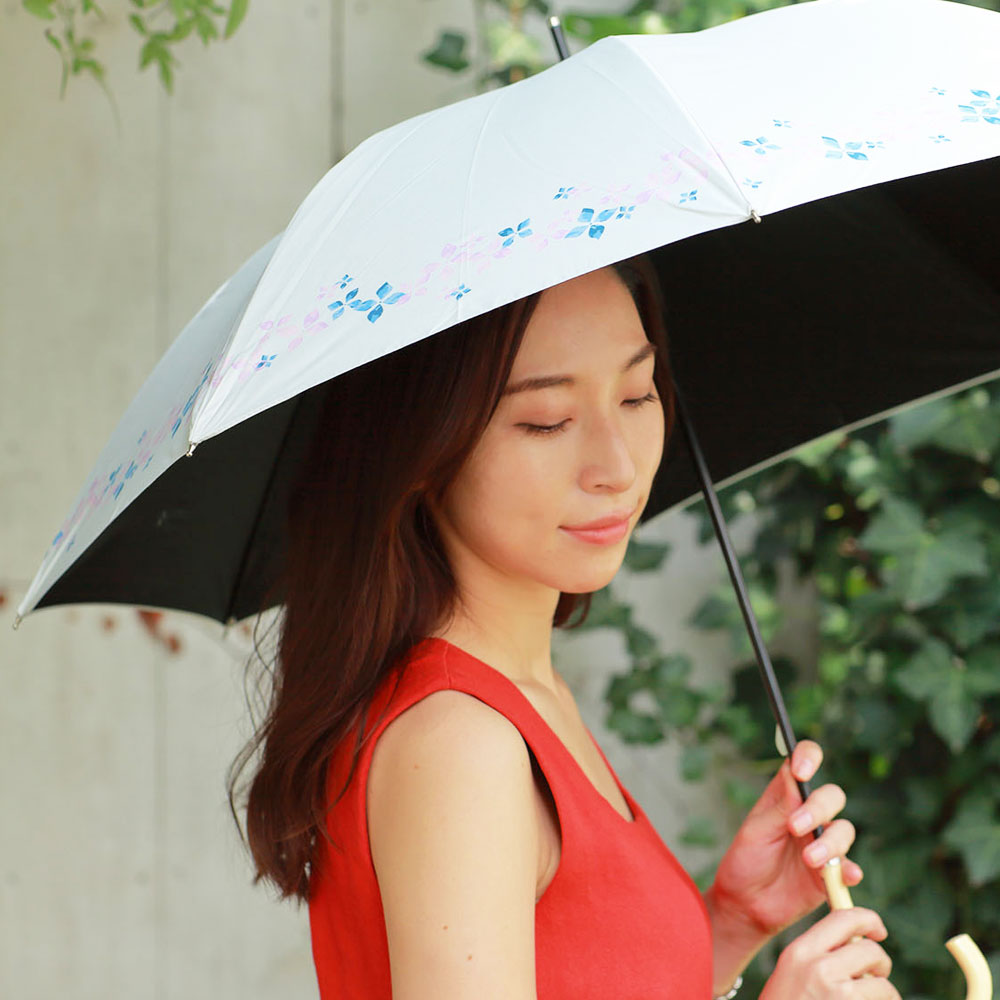 水彩風の花柄の傘。繊細なタッチが、上品な華やかさを感じさせるデザイン。